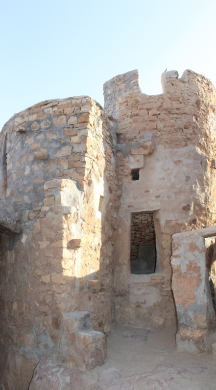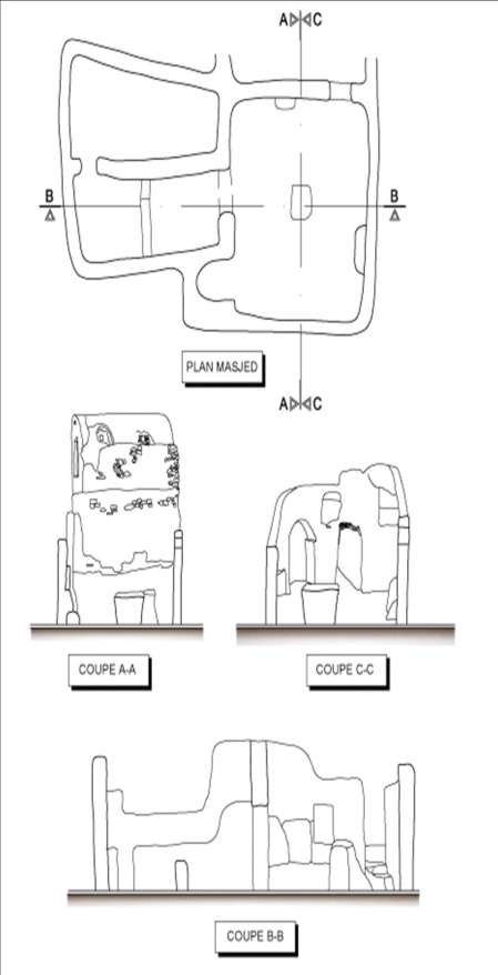 La Mosquée: Elle se situe dans le coin sud - est. Il s’agit d’une salle de prière de forme presque rectangulaire: deux nefs et deux travées et un mihrab et une autre salle moins spacieuse, c’est la chambre de l’Imam.