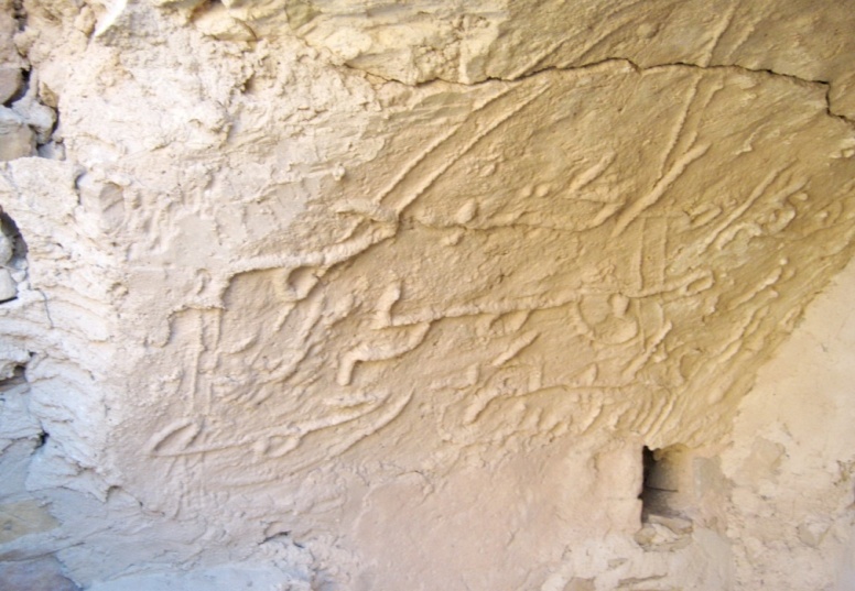 Gasr est très riche de décorations des voûtes. En effet, on y trouve des graffitis, des textes, des figures géométriques, la marque des mains, des pieds, le symbole engravé d’une étoile de David, des épées … bref des ornementations qui reflètent le vécu de la population.
