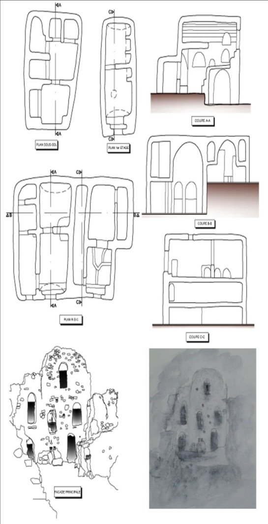 Pour évaluer l’état physique de ce monument et détecter les différentes altérations et dégradations attaquant les structures, on s’est basé sur la documentation graphique, photographique et l’observation oculaire qui ont montré des phénomènes liés aux facteurs suivants: